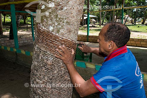 Subject: Demonstration of collection of latex - Maguary Riparian Community - riverine that lived of the collection of latex - Tapajos National Forest / Place: Belterra city - Para state (PA) - Brazil