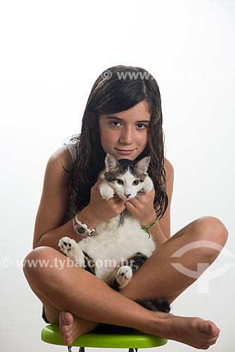 Subject: Girl holding cat / Place: Rio de Janeiro city - Rio de Janeiro state (RJ) - Brazil
