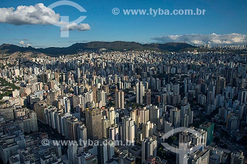 Subject: Aerial photo of Augusto de Lima Avenue - to the left - and Bia Fortes - to the right - with the Curral Mountain Range in the background / Place: Belo Horizonte city - Minas Gerais state (MG) - Brazil
