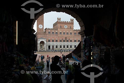 Subject: Street trader - Piazza del Campo (Del Campo Square) - with the Palazzo Pubblico (Public Palace) - 1310 - headquarters of Siena city hall - in the background / Place: Siena - Siena province - Italy
