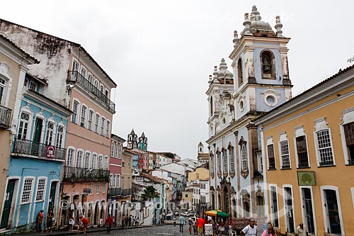 Subject: View of historic houses - Pelourinho with the Nossa Senhora do Rosario dos Pretos Church (XVIII century) to the right / Place: City center neighborhood - Salvador city - Bahia state (BA) - Brazil