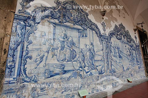Subject: Detail of the portuguese tiles inside of cloister of Sao Francisco Convent and Church (XVIII century) / Place: City center neighborhood - Salvador city - Bahia state (BA) - Brazil