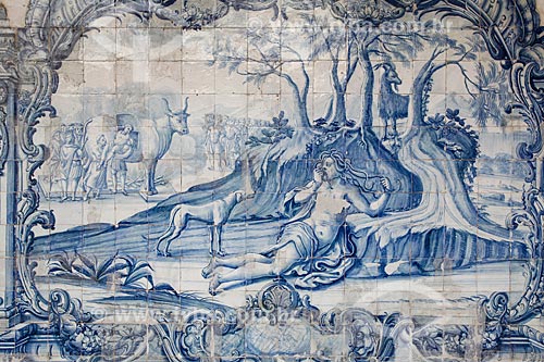 Subject: Detail of the portuguese tiles inside of cloister of Sao Francisco Convent and Church (XVIII century) / Place: City center neighborhood - Salvador city - Bahia state (BA) - Brazil