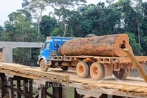 Subject: Illegal timber transport - trunk of Dinizia excelsa Ducke tree / Place: Machadinho do Oeste city - Rondonia state (RO) - Brazil