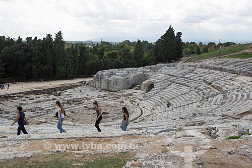 Subject: General view of the Teatro Greco di Siracusa (Greek Theatre of Syracuse) - III century B.C - Parco archeologico della Neapolis (Archaeological Park of Neapolis) / Place: Syracuse - Syracuse province - Italy