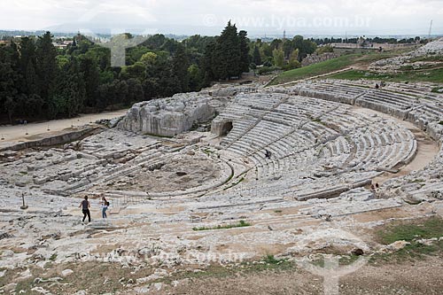 Subject: General view of the Teatro Greco di Siracusa (Greek Theatre of Syracuse) - III century B.C - Parco archeologico della Neapolis (Archaeological Park of Neapolis) / Place: Syracuse - Syracuse province - Italy