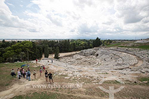 Subject: General view of the Teatro Greco di Siracusa (Greek Theatre of Syracuse) - III century B.C - Parco archeologico della Neapolis (Archaeological Park of Neapolis) / Place: Syracuse - Syracuse province - Italy