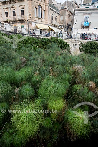 [+] Arethuse Fountain, [+] fountain, [+] landscaping, [+] civil construction, [+] Cyperus papyrus, [+] papyrus sedge, [+] paper reed, [+] plant, [+] vegetation, [+] nature, [+] green area, [+] world heritage, [+] tourism, [+] other countries, [+] Europe, [+] Sicily, [+] Italy