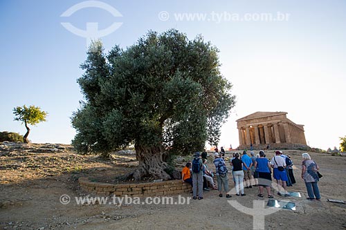 Subject: Tourists - Valle dei Templi (Valley of the Temples) - ancient greek city Akragas - Temple of Concordia in the background / Place: Agrigento city - Agrigento province - Italy