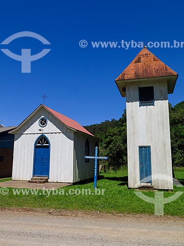 Subject: Facade of the Valentines Chapel - built in wood by the colonists / Place: Linha 28 neighborhood - Gramado city - Rio Grande do Sul state (RS) - Brazil