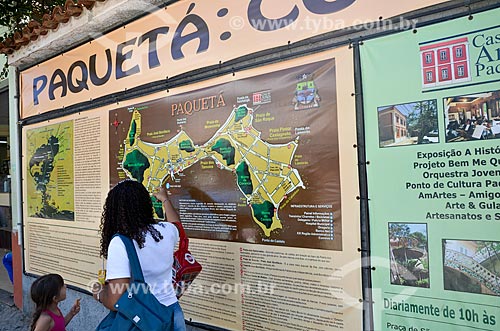 [+] Paqueta Island, [+] island, [+] landform, [+] tourism, [+] woman, [+] adult, [+] people, [+] person, [+] child, [+] kid, [+] reader, [+] reading, [+] cartography, [+] map, [+] orientation instrument, [+] orientation, [+] signaling, [+] localization, [+] tourist, [+] Southeast Region