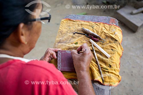 [+] person, [+] paint, [+] painting, [+] marajoara art, [+] woman, [+] adult, [+] people, [+] Para, [+] North Region, [+] artisan, [+] artist, [+] sculptor, [+] popular artist, [+] popular craft, [+] work, [+] working, [+] popular culture, [+] art, [+] Marajo Island, [+] culture, [+] craftsmanship, [+] craftwork, [+] handmade, [+] handicraft, [+] ceramic, [+] handicraft in ceramic, [+] clay