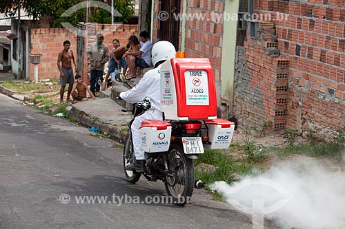 Subject: Motorcycle with Ultra-Low Volume (ULV) equipment - also known as cold fogging machine - combat to yellow fever mosquito (Aedes aegypti) / Place: Redencao neighborhood - Manaus city - Amazonas state (AM) - Brazil