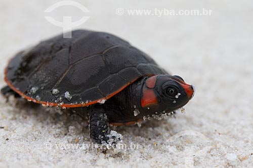 Subject: Detail of Red-headed Amazon Side-necked Turtle (Podocnemis erythrocephala) puppy / Place: Barcelos city - Amazonas state (AM) - Brazil