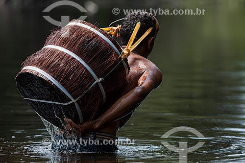 Subject: Man carrying piassava (Attalea funifera) - Negro River / Place: Barcelos city - Amazonas state (AM) - Brazil