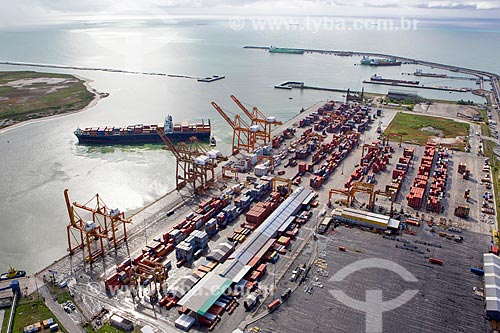 Subject: Aerial photo of the TECON - Container Terminal - of the Port of Suape Complex / Place: Ipojuca city - Pernambuco state (PE) - Brazil