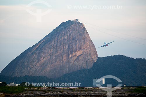 Subject: Take-off - Santos Dumont Airport with the Sugar Loaf in the background / Place: City center neighborhood - Rio de Janeiro city - Rio de Janeiro state (RJ) - Brazil