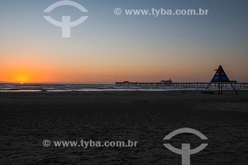 [+] South Region, [+] beach, [+] coast, [+] littoral, [+] seaside, [+] waterfront, [+] sea, [+] tourism, [+] landscape, [+] nature, [+] sand, [+] landform, [+] leisure, [+] balneario, [+] sunrise, [+] twilight, [+] dawn, [+] Rio Grande do Sul, [+] summer, [+] pier