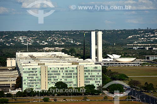 Subject: Esplanade of Ministries and the National Congress in the background / Place: Brasilia city - Distrito Federal (Federal District) (DF) - Brazil