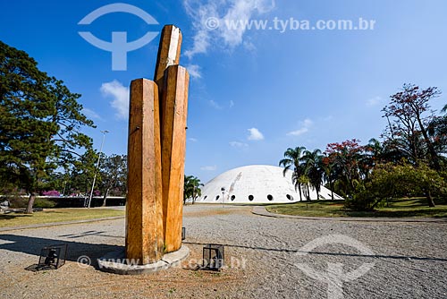 Subject: Sculpture by Elisa Bracher - Ibirapuera Park - with the Lucas Nogueira Garcez Pavilion - also known as Oca - in the background / Place: Ibirapuera neighborhood - Sao Paulo city - Sao Paulo state (SP) - Brazil