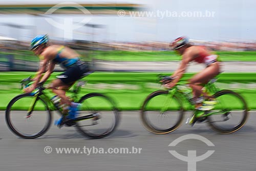 Subject: Female triathlon athletes complete bike circuit on Atlantica Avenue / Place: Copacabana neighborhood - Rio de Janeiro city - Rio de Janeiro state (RJ) - Brazil