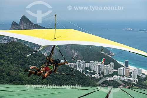 Subject: Take-off - hang glider of Pedra Bonita (Bonita Stone)/Pepino ramp with the Morro Dois Irmaos (Two Brothers Mountain) in the background / Place: Sao Conrado neighborhood - Rio de Janeiro city - Rio de Janeiro state (RJ) - Brazil