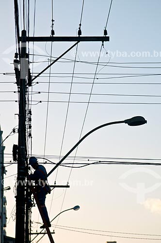 Subject: Labourer doing maintenance on the telephone network / Place: Pelotas city - Rio Grande do Sul state (RS) - Brazil