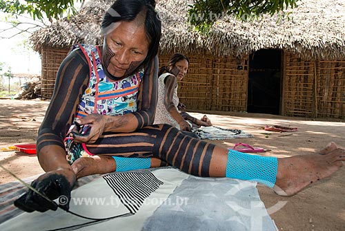 Subject: Indian woman making handicraft - Moikarako Tribe - Kayapo Indigenous Land / Place: Sao Felix do Xingu city - Para state (PA) - Brazil