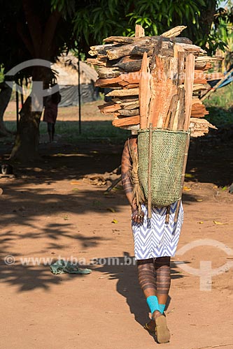Subject: Indian woman carrying fuelwood - Moikarako Tribe - Kayapo Indigenous Land / Place: Sao Felix do Xingu city - Para state (PA) - Brazil