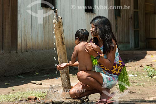 Subject: Mother bathing baby - Moikarako Tribe - Kayapo Indigenous Land / Place: Sao Felix do Xingu city - Para state (PA) - Brazil