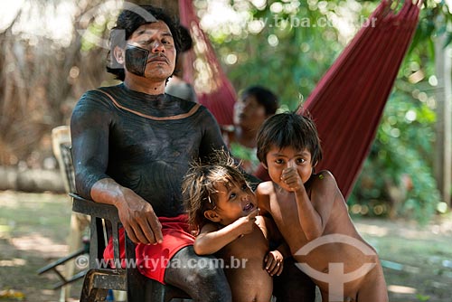 Subject: Man and children - Moikarako Tribe - Kayapo Indigenous Land / Place: Sao Felix do Xingu city - Para state (PA) - Brazil