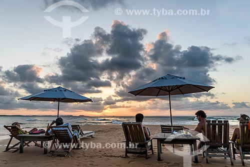 [+] Marau Peninsula, [+] twilight, [+] sunset, [+] evening, [+] dusk, [+] nightfall, [+] night, [+] cloud, [+] sky, [+] tourism, [+] landscape, [+] leisure, [+] fun, [+] sun umbrella, [+] beach chair, [+] bather, [+] people, [+] person, [+] Tip of Muta, [+] tip, [+] Camamu Bay, [+] bay, [+] Dende Coast, [+] Costa do Dende, [+] Bahia, [+] Northeast Region, [+] sand, [+] sea, [+] beach, [+] littoral, [+] coast, [+] seaside, [+] waterfront, [+] landform, [+] nature