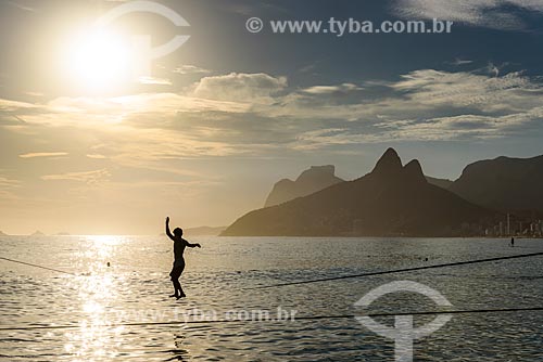 Subject: Practitioner of waterline - Arpoador Beach during the sunset / Place: Ipanema neighborhood - Rio de Janeiro city - Rio de Janeiro state (RJ) - Brazil