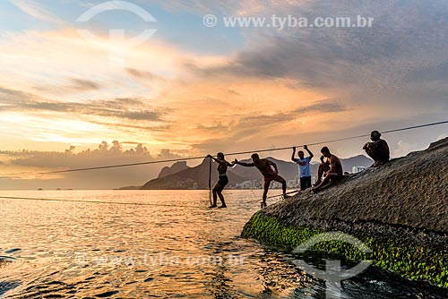Subject: Practitioner of waterline - Arpoador Beach during the sunset / Place: Ipanema neighborhood - Rio de Janeiro city - Rio de Janeiro state (RJ) - Brazil