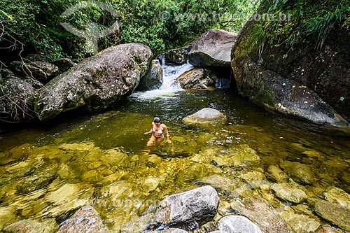 [+] vegetation, [+] landscape, [+] woman, [+] adult, [+] bather, [+] people, [+] person, [+] environmental preservation, [+] conservation unit, [+] Environmental Protection Area, [+] tree, [+] green area, [+] pulo well, [+] Atlantic Rainforest, [+] Pirapetinga River, [+] stone, [+] rock, [+] rock formation, [+] nature, [+] landform, [+] river, [+] waterfall, [+] overfall, [+] cascade, [+] Coffee Valley, [+] Paraiba Valley, [+] Southeast Region, [+] Serrinha do Alambari APA, [+] APA