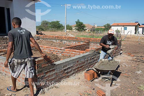 Subject: Bricklayer building house - Truka tribe / Place: Assuncao Island - Cabrobo city - Pernambuco state (PE) - Brazil