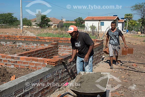 Subject: Bricklayer building house - Truka tribe / Place: Assuncao Island - Cabrobo city - Pernambuco state (PE) - Brazil