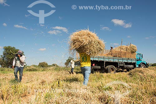 Subject: Truka indians collecting straw from rice plantation to feed cattle - rural zone of the Truka tribe / Place: Assuncao Island - Cabrobo city - Pernambuco state (PE) - Brazil
