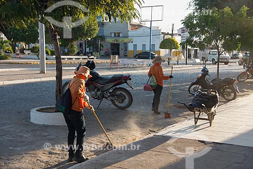 Subject: Street sweeper cleaning the Monteiro city center neighborhood / Place: City center neighborhood - Monteiro city - Paraiba state (PB) - Brazil