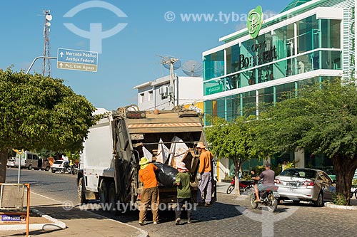 Subject: Refuse collector cleaning the Monteiro city center neighborhood / Place: City center neighborhood - Monteiro city - Paraiba state (PB) - Brazil