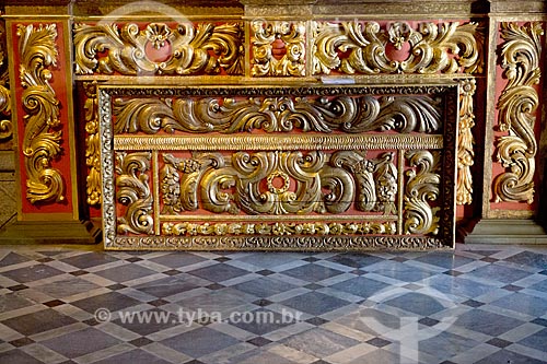 Subject: Detail of wood carving with gold plating inside of Our Lady of Monte Serrat Church (1671) - Sao Bento Monastery / Place: City center neighborhood - Rio de Janeiro city - Rio de Janeiro state (RJ) - Brazil