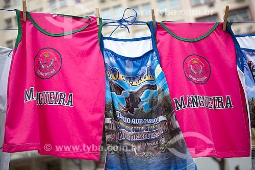 Subject: Samba school sleeveless shirts on sale during Cordao do Bola Preta carnival street troup parade / Place: City center neighborhood - Rio de Janeiro city - Rio de Janeiro state (RJ) - Brazil