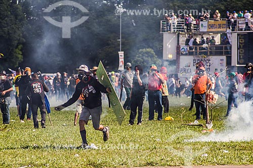 Subject: Confrontation between demonstrators and the Military Police during the demonstration against the government of Michel Temer - Esplanade of Ministries / Place: Brasilia city - Distrito Federal (Federal District) (DF) - Brazil