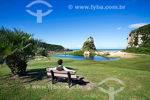 Subject: Woman observing view of the Guarita State Park / Place: Torres city - Rio Grande do Sul state (RS) - Brazil