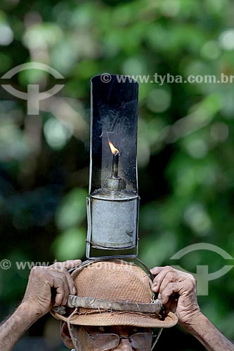 Subject: Detail of poronga - typical lamp used by rubber tappers - during the collection of latex - Our Lady of Fatima riparian community / Place: Manaus city - Amazonas state (AM) - Brazil