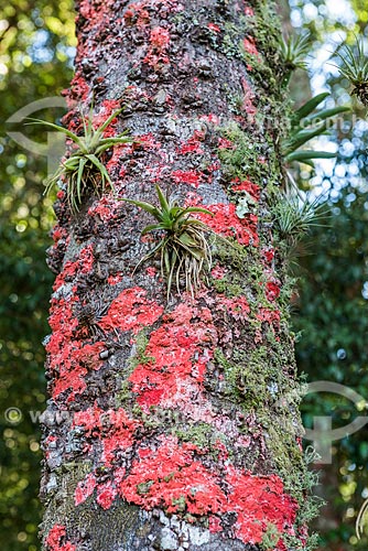 Subject: Detail of pink lichen - trunk / Place: Visconde de Maua district - Resende city - Rio de Janeiro state (RJ) - Brazil