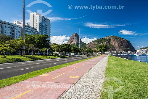 Subject: Bike lane - Botafogo Beach with the Sugar Loaf in the background / Place: Botafogo neighborhood - Rio de Janeiro city - Rio de Janeiro state (RJ) - Brazil