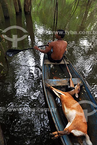Subject: Riverine taking deer in your canoe - hunted in amazon rainforest / Place: Amazonas state (AM) - Brazil