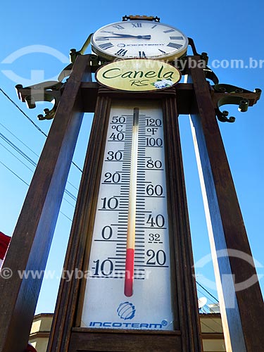 [+] South Region, [+] tourism, [+] hour, [+] time, [+] clock, [+] seasons, [+] cold, [+] degree, [+] measuring instrument, [+] number, [+] centimeter, [+] millimeter, [+] meter, [+] measure, [+] measurement, [+] temperature, [+] architecture, [+] decoration, [+] thermometer, [+] ornament, [+] street furniture, [+] decor, [+] Gaucha Mountain Range, [+] Rio Grande do Sul