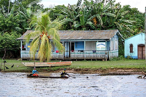 Subject: View of the Bom Jesus Municipal School - on the banks of the Amazonas River / Place: Urucurituba city - Amazonas state (AM) - Brazil